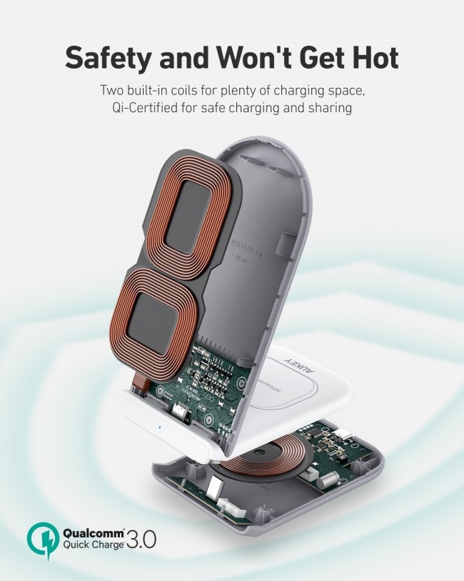 • Aukey LC-A2 2-in-1 draadloos oplaadstation