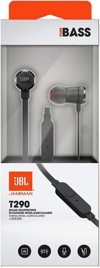 Maak kennis met de JBL T290 in-ear oordopjes. Deze earphone is een lichtgewicht, comfortabel en compact. Onder de alluminium afgewerkte behuizing leveren twee 8,7 mm drivers indrukwekkende bas en produceren het krachtige JBL Pure Bass geluid, waardoor je eindeloos kunt genieten van jouw favoriete muziek!  De een-toets afstandsbediening en de platte kabel die niet snel in de war raak zorgt ervoor dat je muziek kunt afspelen en gemakkelijk gesprekken aan kunt nemen met de ingebouwde microfoon. Dit maakt de JBL T290 de ideale earphone voor werk, thuis en onderweg!